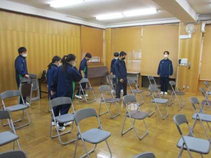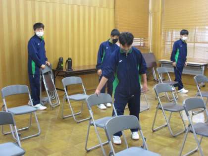 みんなで「この位置に椅子を置いた方が見やすい」などの意見交換をしながら準備を行っていまし