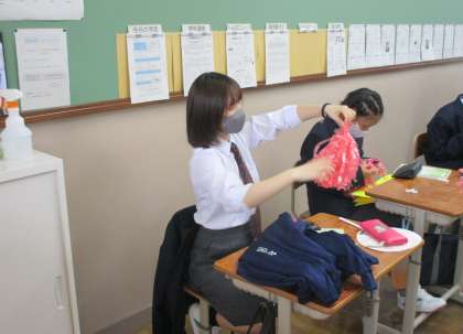 1年生にとっては、初めての東山祭スポーツフェスティバルとなり、本番にむけての応援グッズを作っていました