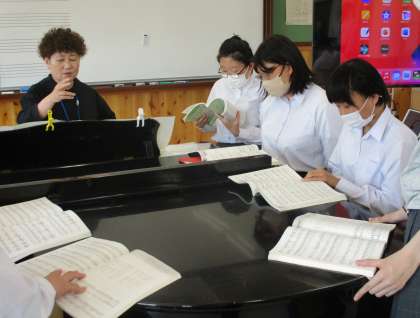 音程・音量を確認しながら綺麗な歌声が音楽室に響いていました