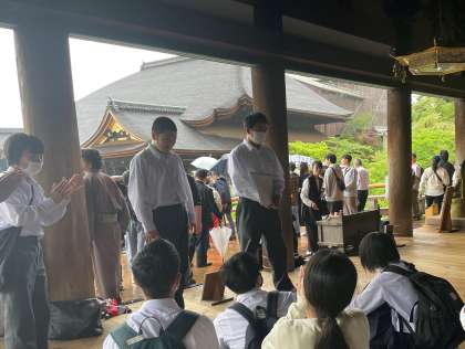 奥の院で清水寺に関するクイズレクリェーションをして、記念撮影。