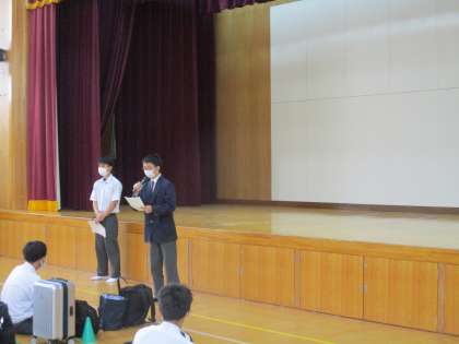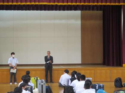 出発式では、校長先生のお話、研修旅行委員などからのお話がありました