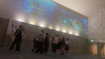 大きな水族館の迫力に驚いています