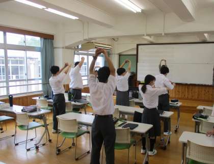 歌を唄う前に身体をほぐして心身のリラックス、その後、姿勢を正して腹式呼吸の練習