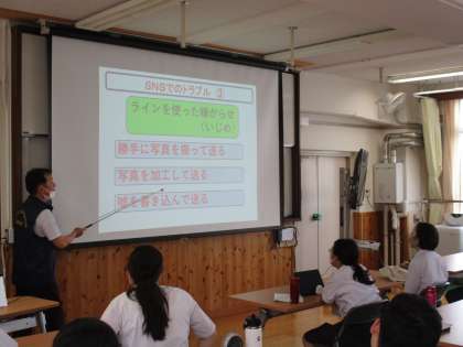 暴力行為やインターネットの怖さ、スマートフォンの使用方法などについて講義をしていただきました