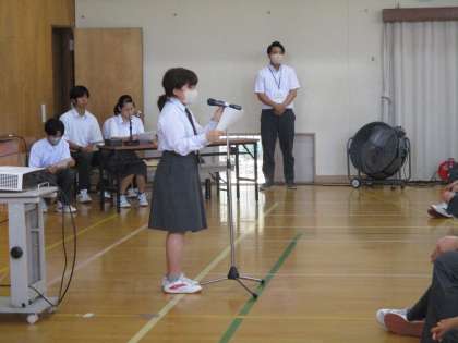 その後、表彰式、各委員会からのお話などで本日の全校集会は終わりました