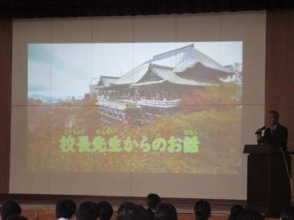 校長先生から1年間行うこととして、「あいさつ」「人を大切にする」「目標をたてて学習に取り組む」を改めて伝えました