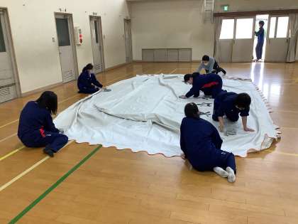 後片付けも地域の方々と一緒に行い、濡れたテントを体育館で乾かしました
