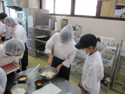 フォーシーズンズホテルのパティシェの方に講師をしていただきまして、スイーツ作り方を教えて頂きました