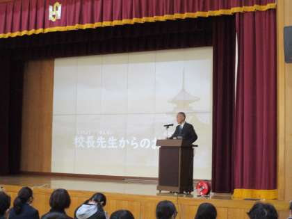 はじめに校長先生から令和6年能登半島地震についてお話をされました