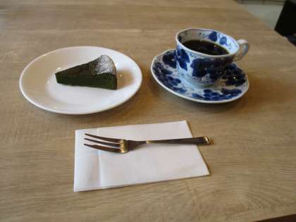 こちらのケーキセットはホットコーヒーと抹茶のガトーショコラです