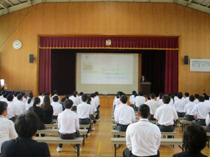 今日から後期が始まりました。1時間目の後期始業式では、校歌斉唱の後校長先生のお話がありました。