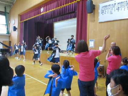 ステージでは、様々な団体の発表がありました。本校からは、音楽部の演奏と3年生有志のソーラン節を披露しました。ソーラン節では、小松谷保育園の園児さんも横で一緒に踊ってくれました。また、京都女子大管楽器ゼミの方の演奏では本校の生徒も参加させていただきました。