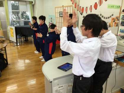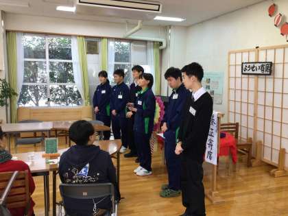 いつも喫茶に来てくださる地域の方から「楽しいイベントを開催してほしい!」という依頼があり、2・3年生によるお楽しみ会を8日(金)に開催しました。2年生は、少しずつ練習を重ねている「小咄」を披露してくれました。まだまだ人前での発表には慣れておらず、緊張でセリフが飛ぶ生徒もいましたが、仲間と協力し、最後までしっかりやり切ることができました。3年生は、ジェスチャーゲーム!お題に沿ったジェスチャーをして、お客様を大いに楽しませてくれました。参観日ということもあり、保護者の方も含めて大勢のお客様に楽しんでいただけたイベントとなりました。