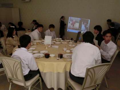 夕食の後はレクリエーションをしました。生徒が紅白に分かれ各グループごとに発表する出し物と、先生方の若かりし頃や生徒の子供の頃の写真を使って「これは誰でしょうクイズ」をしました。とても盛り上がり、時間が足りなくなったため全ての出し物ができなかったので、続きは次の日の朝食後に実施予定です