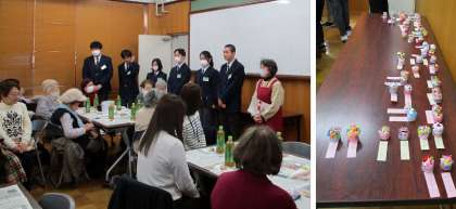今月のすこやかサロンでは、9月のスクールフェスティバルで食品サービスがおこなった『マグネットケーキ作り』をしました。2年生の生徒がテーブルごとに1人ずつつき、手順説明や補助等をしました。参加された方々に「生徒さんの教えるのが上手だった」「ほめ上手でうれしかった」などの感想をいただきました。生徒からも「喜んでもらってるのを見るのがうれしい」「参加されている方から元気をもらった」という感想が聞かれました。