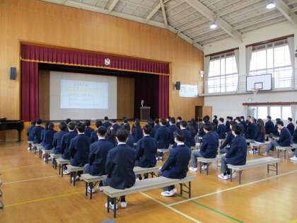 校歌を元気よく歌い、学校長から「あいさつをする」「人を大切にする」「自分の良いところをたくさん見つける」ということを一人一人に取り組んでほしいと、お話がありました。