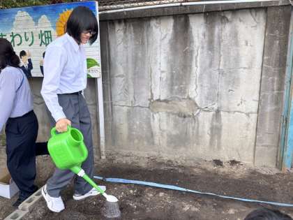 学習の最後には、みんなで協力してひまわりの種をまきました。これから大切に育てていきます。