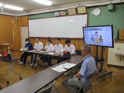 5限目に生徒会が中心となって、生徒集会がオンラインで行われ、「学校生活について」の見直しについて、報告がありました。