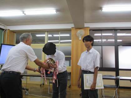 表彰では、6月に島津アリーナで開催された卓球バレー大会の賞状とトロフィーが授与されました。
