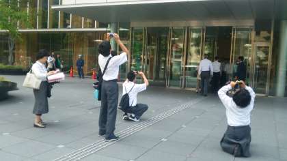 博報堂グループ,赤坂の本社社屋に着きました。見上げるばかりのタワーにまず圧倒されてます。