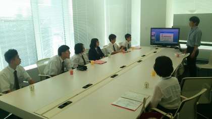 博報堂グループ いよいよ企業訪問です。ちょっと緊張した面持ちでお話しを聞いています。