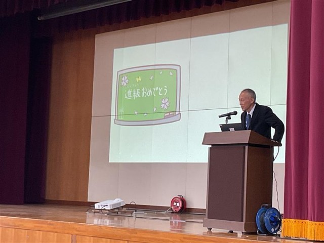 校長先生から、4月の目標を覚えていますか?と聞かれ、俯いている生徒がたくさんいましたが、改めて挨拶の大切さや来年度の目標に向けてのお話しがありました。