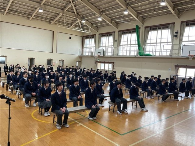 1.2年生は凛々しい表情で、しっかりと校長先生の話を聞いていました。