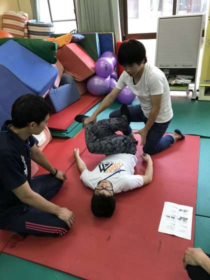 15日午後,教職員対象に理学療法士による学習会をおこないました。