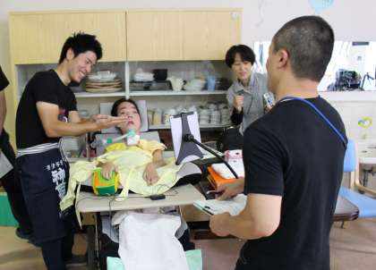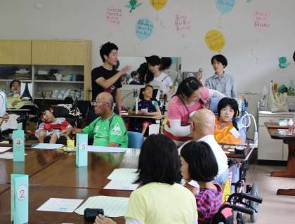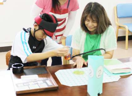 中学部1年生の子どもたちが開くスマイル喫茶は,癒しの音楽の中で冷たい飲み物が飲める素敵な場所です。