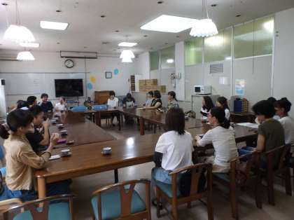 とても和やかな雰囲気の中,自己紹介ではお子さんの学部や名前を話されました。その後,子育てをしていて嬉しかったこと・楽しかったことや大変だったことなど,家庭での子どもたちの様子や日ごろ取り組まれていることを,学部・学年を超えてお互いに話し,楽しく有意義な時間となりました。