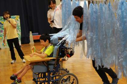 後半は,まず七夕にちなんだ『お星さまゲーム』をしました。天の川を横切るリレーが始まると,応援の歓声が響きました。