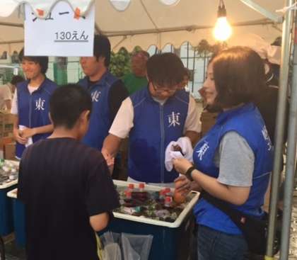 本校高等部地域実践ユニットのメンバー3名がふれあい大塚夏まつりでおもてなし活動をおこないました。
