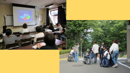 第1回目の本日は「京都市の総合育成支援教育について」の講義,「車いす操作と介助の基本」についての講座と実習,その後本校児童生徒の活動の様子を見学しました。