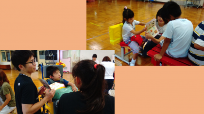 1、2年生はペアの友だちと「ぞうさんの散歩」の音楽に合わせて歩き、出会った友だちと好きな食べ物や遊びなどを紹介しあい、交流を深めました。増え鬼ではペアの友だちと手を繋いで鬼ごっこをして遊びました。誰が狙われているのかドキドキしながらペアで息を合わせて逃げたり、追ったり、笑いがいっぱいの交流になりました。