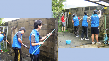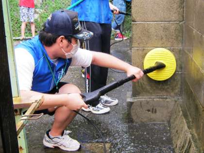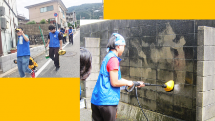 先日,大塚児童館の方から「ブロック塀を綺麗にしたいんだけど」という相談を受け,地域実践ユニットのメンバーが,高圧洗浄機を持参してブッロク塀を洗浄に出かけました。活動では,水しぶきを浴びながらも,「綺麗にしたい」という一心で,ひたすら洗浄を行い,見る見るうちに綺麗になっていきました。