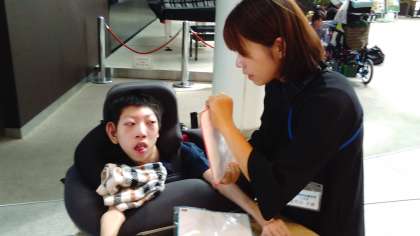 キッズプラザでおみやげを買って集合しました。これからバスに乗って宿泊先に向かいます。