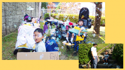 高岩東公園では、シャボン玉をしたり、すごく高い滑り台をしたりしてあっという間に楽しい時間が過ぎました。