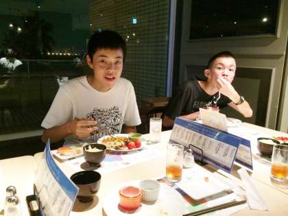 大変きれいなホテルで,今日はビュッフェ形式の夕食です。食べ過ぎないように,健康も考えながら料理を選び楽しく食事をしました。