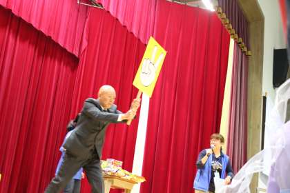 最後は,みんなでじゃんけんゲームを楽しみました。会場の皆様と学校長が対戦しました。勝ち残った方には,素敵な商品のプレゼンがあました。