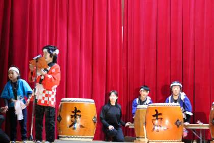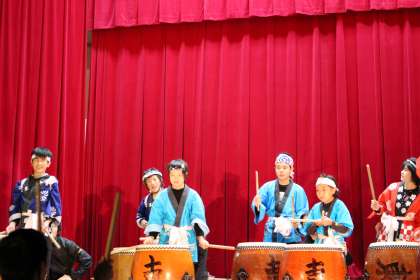 昨年に引き続き和太鼓を発表しました。昨年よりずっとパワーアップして新曲に取り組みました。みんなの心を一つにして聞く人の心に響く和太鼓演奏でした。
