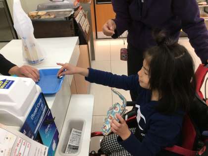 レジでは,子どもたちが自分の力で代金を支払うことができました。