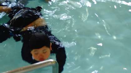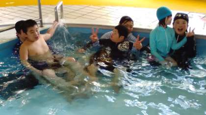 バチャバチャ足で水を飛ばしたり、水の中でジャンプしたりと笑顔いっぱいで活動しました。