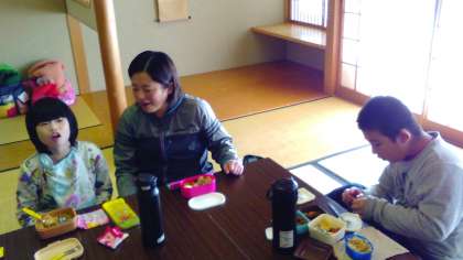 プールの中で体をいっぱい動かして活動した後のお弁当はとびきり美味しかったです。