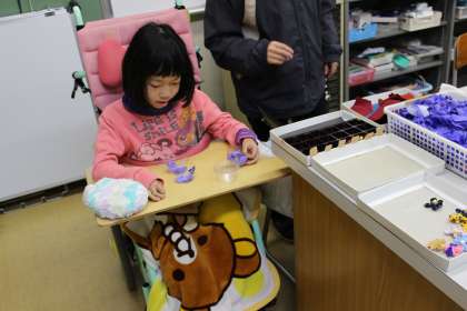 担当の先生や仲間とコミュニケーションを取りながら,指先に気持ちを集中して一生懸命に製作していました。