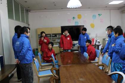 中学部「地域探索ユニット」の生徒と高等部「地域実践ユニット」第4期生徒が一緒におもてなしについて学びました。最初はみんな緊張した表情でしたが,一人一人が自己紹介をするうちに少し表情も和らいできました。