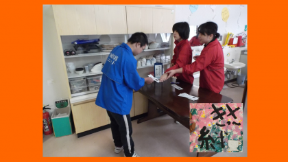 今日の3・4時間目,中学部の役割活動が,ランチルームで喫茶「絆」を開き,おもてなし活動をしました。