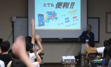 6月13日(水)の5・6限に高等部で「スマホ・ケータイ安全教室」を行いました。KDDIスマホ・ケータイ安全教室から講師をお招きし,1年生から3年生の生徒43名が参加しました。