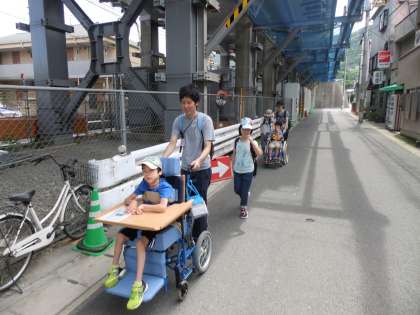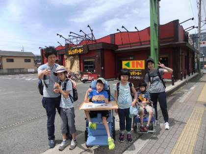 はじめに買物学習で利用する予定のスーパーに行きました。爽やかな風が吹く中,学年の友だちや指導者とペースを合わせ,交通ルールを守りながら進むことができました。