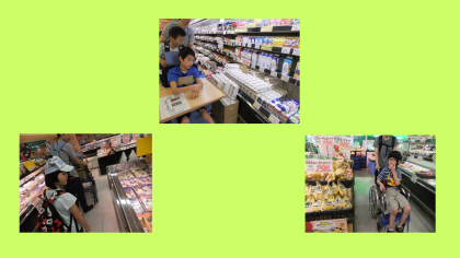 スーパーの店内では,様々な商品に興味津々でした。また,地域の方に挨拶をしたり,挨拶を受けたりして触れ合うこともできました。