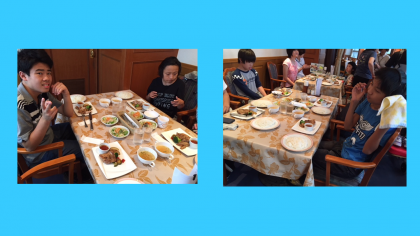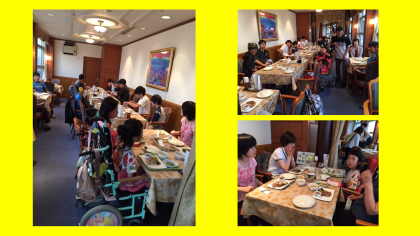 みんなお腹がペコペコです。レストランで昼食をしっかりと食べました。